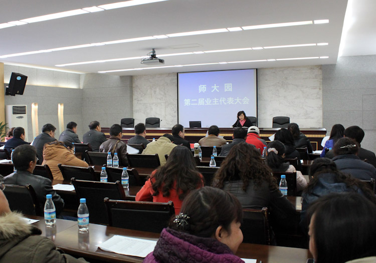 ??? 12月17日下午,由校工会牵头筹备的师大园第二届业主代表大会在大学城226会议室召开。47名师大园业主代表(本届业主代表63人)、大会筹备组和学校相关部门负责人,以及虎溪街道、虎兴社区、珠海葆力物业公司负责人参加了会议。会议由大会筹备组成员陈兰主持,校纪委书记张尚毅出席会议。