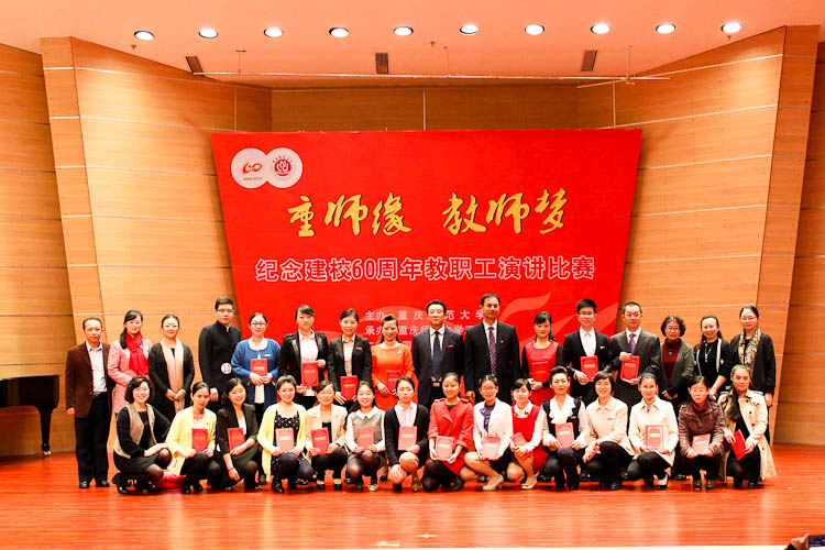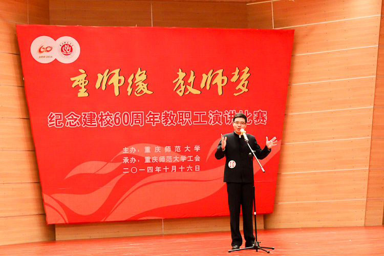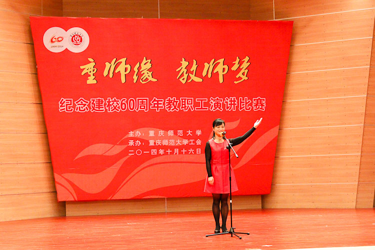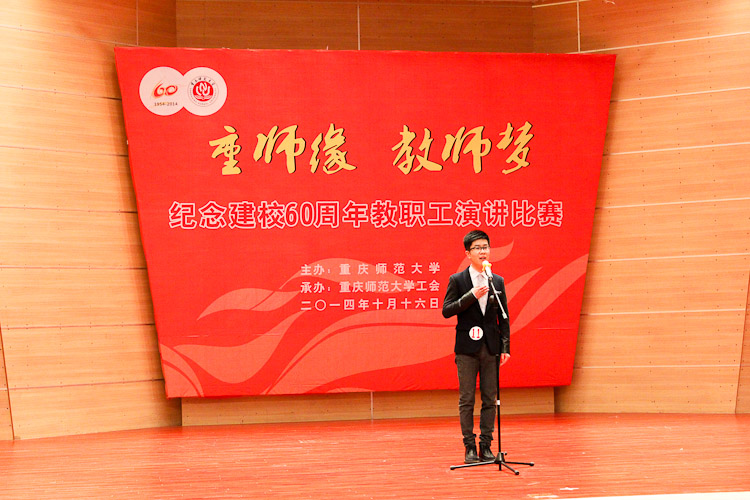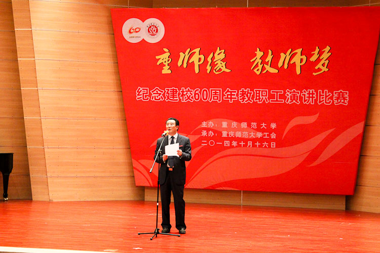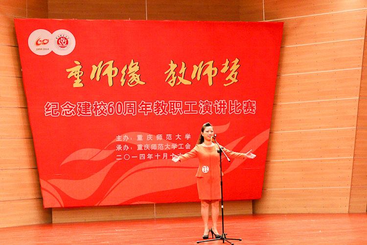 ??? 作为建校60周年纪念活动之一的“重师缘 教师梦”教职工演讲比赛10月16日下午在校友会堂音乐厅隆重举行。来自全校各二级工会的22名选手参加了比赛。校领导陈志军、张尚毅出席演讲比赛活动。